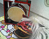 とりあえずこの日は、雨に濡れてしまったチンドン太鼓とこれからひんぱんに使用する獅子頭。この他にもイベント本番の翌日にはチンドンの衣装などがそこかしこに。たぶん近所の人からは「あの家っていったい…」とか思われているかもしれないな…。