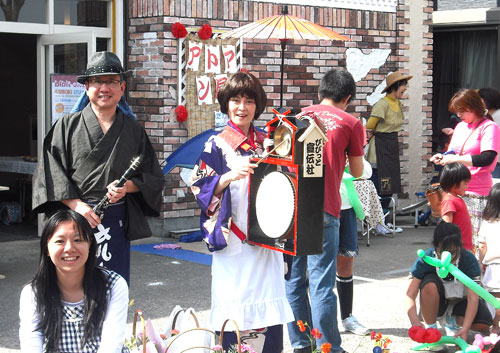 弊社スタッフ“びびっと宣伝社”によるチンドン、鶴ヶ島周辺でがんばっていらっしゃる気まぐれマジシャン“よだたかみ”さんによるマジック。子ども達はよださんのマジックに釘付けでした